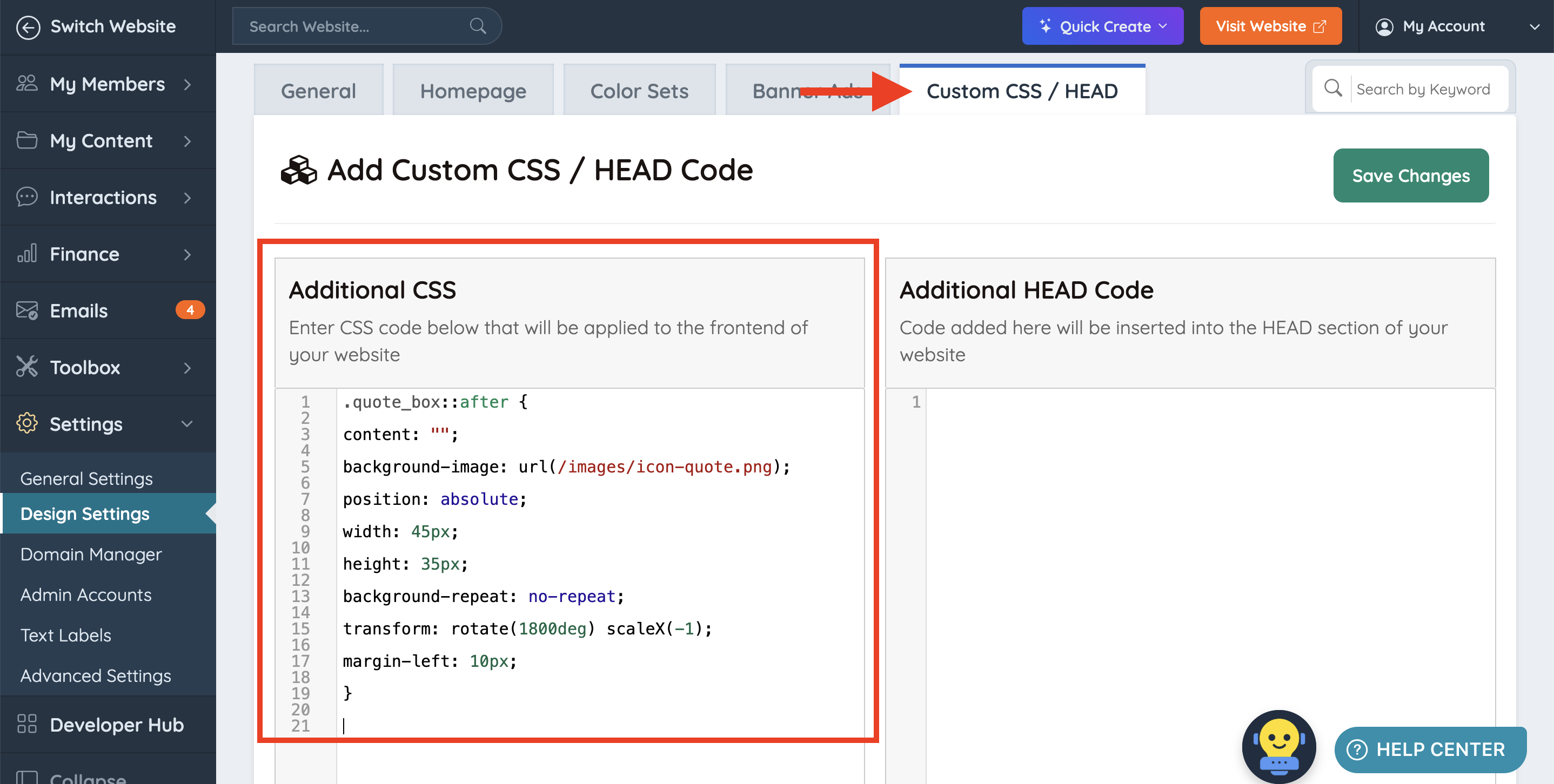 In order to add it, please go to Settings >> Design Settings >> Custom CSS >> and paste the code below:
